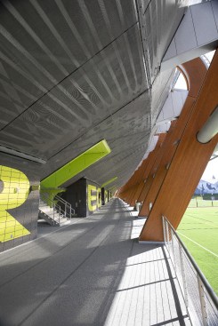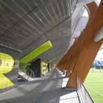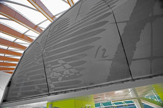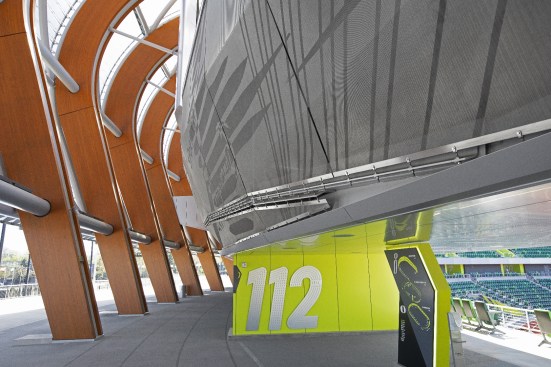 Figueroa says typically what you see under the bowl of a stadium is all of its inner-workings, such as plumbing, hydraulics and HVAC services. But SRG’s design team wanted to hide all the unsightly mechanical that can usually be seen when strolling a stadium concourse. The design would need to obscure, but also comply with ventilation requirements for essential services such as HVAC.