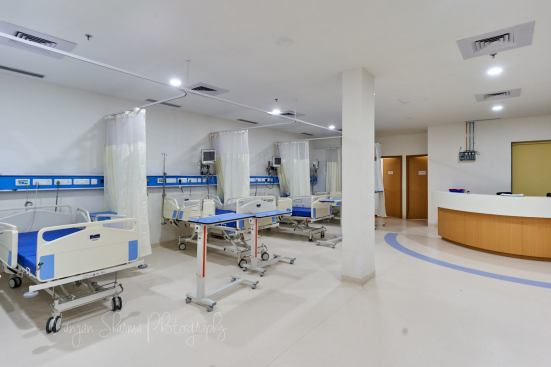 Since the building volume was becoming fragmented, consequently the challenge was to design an efficient circulation pattern for patients, visitors, doctors, staff and services. The functions have been placed on site in an optimal and efficient manner in order to reduce the on-foot movement. The circulation patterns and the arrangement of the corridors have been planned so that the various zones and departments are in proximity to each other; special care has been taken so that these departments have efficient intra and inter-linkages. The service cores have been strategically placed to enable the unobstructed flow of doctors, patients, staffs, and visitors; appropriate measures have been taken to segregate the movement routes for as much as can be achieved. There is an abundant provision of ramps, guiding floor tiles and all other amenities to make the building barrier-less, and making disabled-friendly. The design enables sufficient ingress of natural light and ventilation in every room, which contributes towards the mental and psychological well-being of the patients and their carers.