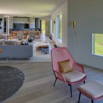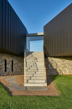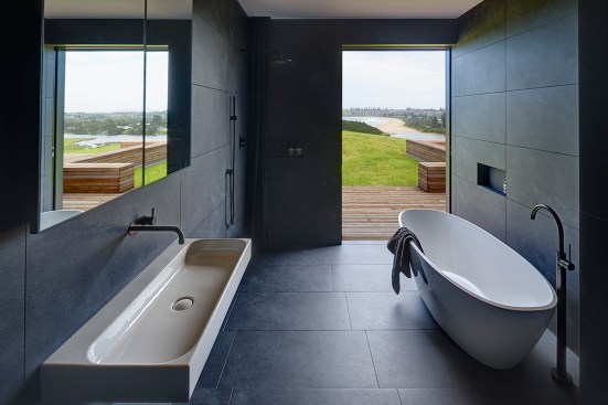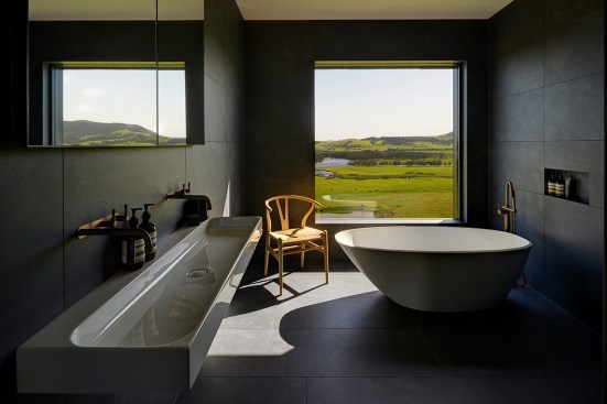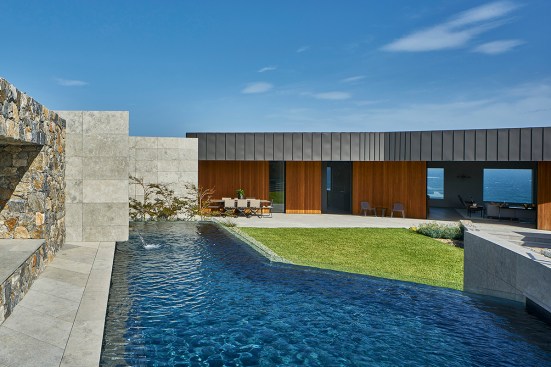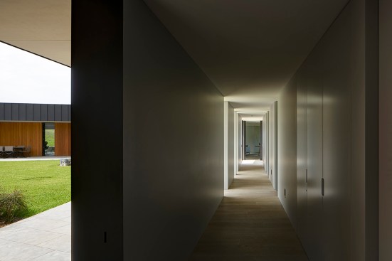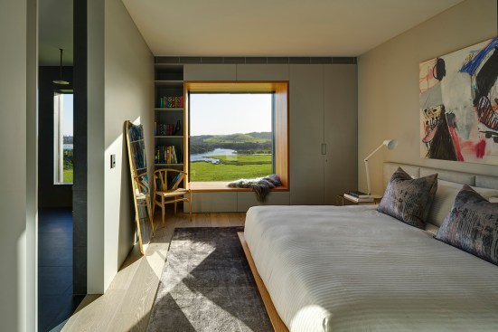 The architects’ design is inspired by the spectacular landscape. The 180-degree views and breathtaking backdrop called for a respectful celebration of the location. Instead of providing the same view throughout the house, the design creates considered framed glimpses of what lies outside. Meanwhile, a storm-viewing room pays tribute to the drama of extreme weather fronts creeping up from the ocean.