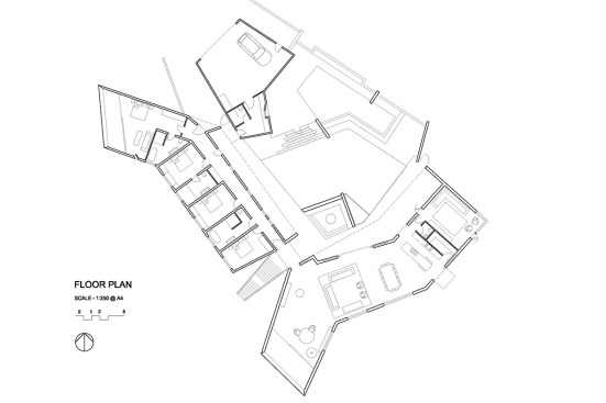 The four bedroom, four-and-a-half-bathroom main home is connected by three pavilions, wrapped around a protected courtyard.
