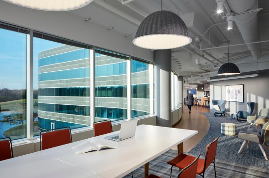 The space houses the corporate functions of IDEX and is designed to support focused work while still allowing for team interaction and innovation. A variety of strategically placed collaboration zones encourage interaction between users at the perimeter of the space and are linked to dedicated interior private offices for heads down work. A number of tech-enabled conference rooms of varying sizes support more formal interactions, while a game area and large central café overlooking a pond provide the backdrop to spur informal sharing of ideas.