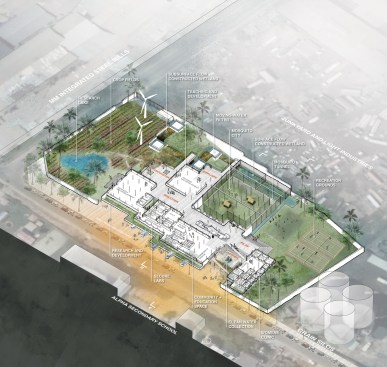 "Healing Habitats proposes a method of wellness where architecture directly engages public health. The design is a great example of how low-tech architecture plays a significant role in sustainability. Comprehensive research in this design incorporates current needs facing the site, such as community and ecology, as well as projective concerns of flooding, drought, water and wastewater."
