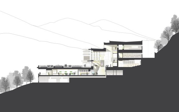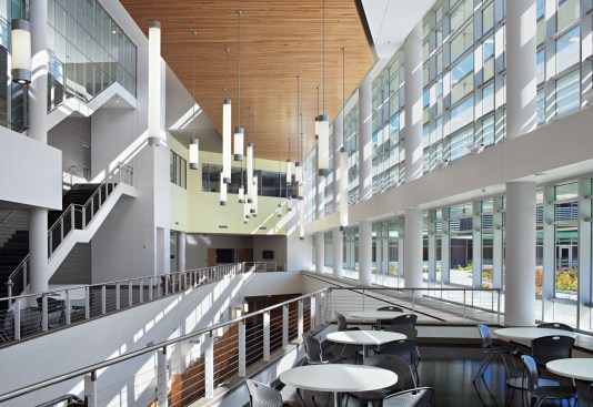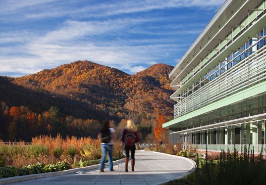 The College of Health and Human Sciences is the first project on Western Carolina University’s Millennial Campus, housing the Nursing, Health Sciences, Physical Therapy, Social Work, and Communication Sciences and Disorders departments. The building contains classrooms, research and teaching labs, offices, gathering spaces, and a coffee shop. A multi-disciplinary clinic provides specialized health and rehabilitation services and a rehabilitation pool for students to learn and practice aquatic therapy. Health and Human Sciences also operates a clinic, open to the community, where students work with patients under faculty supervision. Coordinating common spaces (including distance learning classrooms) maximized construction dollars and created interdisciplinary synergies among the departments. Offices are woven throughout the building to enhance cross pollination of ideas. The building includes student gathering space for individual and group study, and large meeting and multi-purpose areas.