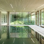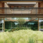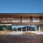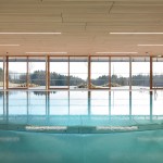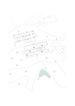 All rooms have a clear view of the cultural landscapes. The seminar area and the busy primary care clinic offer not only beautiful views, but also an unobstructed ground level exit into the natural space. The bathing and sauna area is located in the southern structure directly at the topographical base of the area with a clear view to the woodchip trail and the pond landscape.