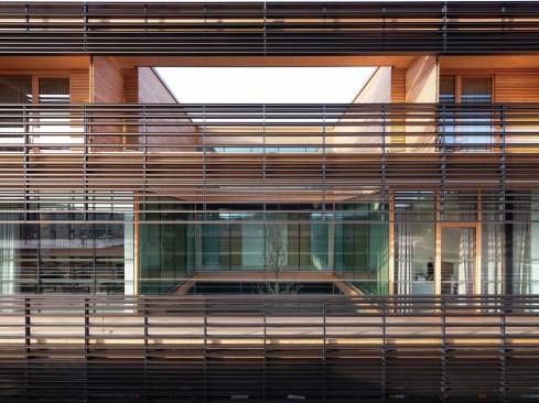 The simple, compact structures impress with windows that, contrary to the façade, are shielded from most direct sunlight. The optimally insulated façade and shady atria work towards the energetic requirements.