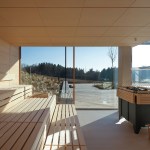 Views of the Schöckl mountain and surrounding hilly forests and meadows are the primary influence for the space allocation plan at Josefhof. The entrance area, dining rooms and bar offer a view towards the south and north. The underlying structures are staggered so that the roofs are level with the heel of the parapet of the building above. Between the structures, the natural topography of the landscape is allowed to continue.
