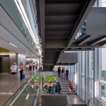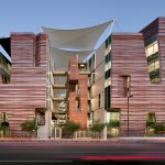 The canyon space, shaded by PTFE sails, is further made comfortable through the introduction of tempered “waste” building relief air normally exhausted to the roof. The relatively thin building bars provide daylight throughout with extensive shading devices controlling the amount of solar radiation. The building has been successful in creating a strong sense of community for this new institution and establishing a recognizable landmark for downtown Phoenix – an image of progressive education very much in keeping with the goals of this new medical education institution.