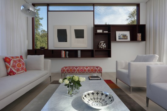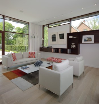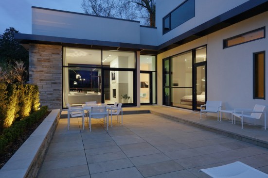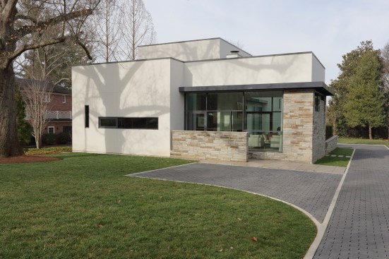 The Hearn Residence is located in the city of Belle Meade, a very traditional and highly regulated area in Nashville, TN. The owners of the project wanted a modern residence with ample natural light and a layout that would allow all of the major spaces (including the master bedroom suite) to be located on the ground level. The massing scheme for the house allows the front elevation to maintain a single story street presence with the two story section pushed to the rear of the property. The large front lawn maintains the traditional relationship of the building to Lynnwood Avenue. The single story street level massing allows for the landscape to play a more dominant role on the site. The plan is designed so that the primary living spaces are organized around a private terrace on the ground level. The 4000 sq. ft. residence is organized on three primary levels: Terrace Level, Second Floor and Media Room. The ceiling heights vary in order to keep the building volume as compact as possible.