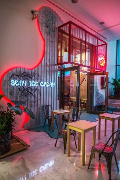 Enjoying a delicious ice-cream always has to be a memorable experience and with this in mind the project for this ice-cream parlor was done. The contrast between the industrial context and the softness of the ice-cream leads us to explore paths filled with form and color exploiting the space to the most so that every corner tells a story.