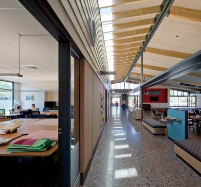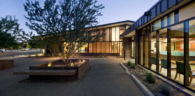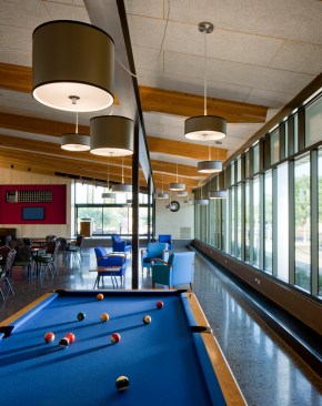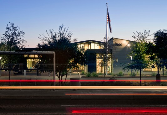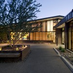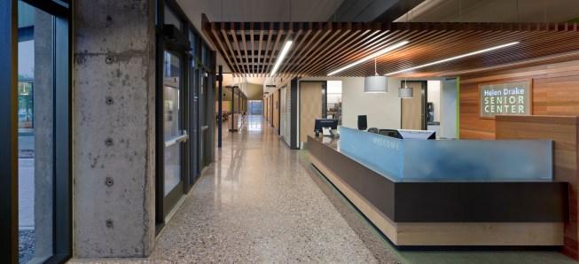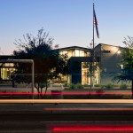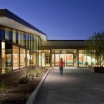 Formerly known as the Manzanita Senior Center, the new Helen Drake Senior Center was re-named in honor of Helen Drake, a visionary in the field of municipal services for seniors in Phoenix since the 1970s. Originally conceived as a place to meet for weekday meals, senior centers throughout the city have come to serve a greater role with continuing education classes, exercise programs, commodity distribution and a multitude of social/cultural events orchestrated by members. The Manzanita community of seniors had a distinct interest in the configuration and outcome of their new home and participated actively in the design effort from conceptual schemes to the selection of furnishings and finishes. The new center, built on 4.46 acres of land in a residential neighborhood, replaced its previous home in an outdated strip mall. The design revolves around multipurpose space for daily meals and special events, flanked by classrooms, a library, a computer room, and adjacent outdoor seating decks. Natural materials, clear acoustics, daylighting, user-friendly wayfinding, and universal principals for accessibility formed the basis of design. The structure is exposed, revealing a variety of colors, textures, nd spaces for small visits or large events. Sustainable components include: 40 kW solar array, recycled materials, light & temperature sensors, pervious paving at the parking lot and shade from over 108 native trees. The stage area located in the main interior gathering space also opens to the exterior along the east entry courtyard for large events during the temperate months. Home to an expanding senior community, the Helen Drake Senior Center design strives to inspire connections: person-to-person, inside-to-out, and whole-to-part.