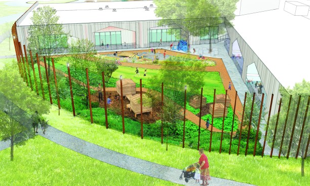 Crystal Bridges Museum of American Art, the spectacular artistic storehouse designed by Moshe Safdie, FAIA, for Walmart heiress Alice Walton, will soon be joined by a second outstanding work of architecture driven by the same forward-thinking vision. The Helen R. Walton Children’s Enrichment Center + Early Childhood Initiatives Center from New York’s LTL Architects is a monument no less ambitious than the museum that sits directly across from it, although its mission is of a very different sort: Located in the town of Bentonville, Ark., the Waltons’ longtime home base, the center is in a far corner of one of the poorest states in the union, an area that lags behind particularly in the areas of education and healthcare.