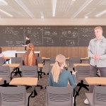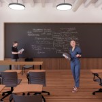 The design team restructured the east wing of the building to expand and adapt classrooms for new pedagogies that are open, flexible, and equipped for both lecture and team-based learning. The expanded bay shifted from a corridor lined with classrooms and faculty offices to one that is daylit and offers cozy niches where students can collaborate or study. Faculty offices were consolidated to the west wing, where a more efficient layout yielded collaboration space for both faculty and students.