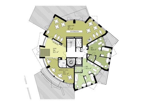 On the top floor with a spectacular view of Lund, Malmö and Öresund a hall for dinners, lectures and other events is located in direct connection to two of the rooftop terraces.