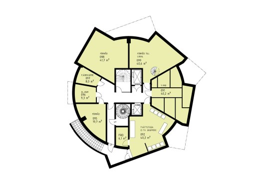 The ground floor with its more public functions interacts with the intense traffic of students and teachers in the LTH campus area.