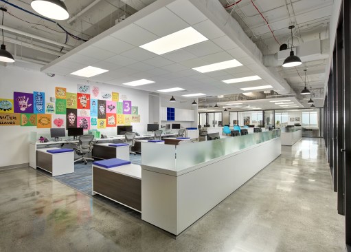 Architecture and design firm Stantec has completed the interiors for Hemisphere Media Group, a Spanish-language media company located at 4000 Ponce de Leon Boulevard in Coral Gables, Florida. The 9,000 square foot space in the heart of the suburban city boasts a Wynwood-esque vibe with exposed ceilings, polished concrete floors, bright colors and warehouse lighting.