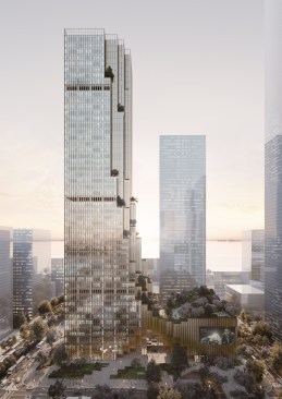 This level celebrates the city’s outdoor lifestyle with a restaurant, shops and leisure areas overseeing the city. Above this floor, the tower steps back gradually with a series of green roofs and terraces, connecting the users to nature and offering panoramic views of Shenzhen Bay. Cascading down the facade, vegetation will purify the air and improve the indoor environment.