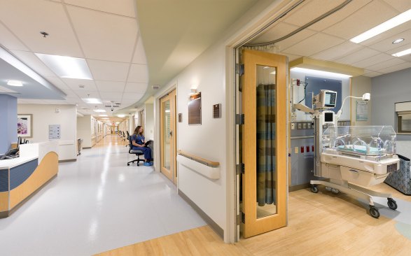 Gresham Smith partnered with Henrico Doctors’ Hospital to relocate the services of the Women’s Pavilion into one centralized location, expanding all women’s care services in order to meet the growing demand of women and their families in the Richmond community. The Women’s Hospital includes a curved, two-story lobby, vestibule, new drop-off canopy, new exterior signage, and a newly renovated and dedicated entrance on Forest Avenue, intended to improve patient flow and access. The project includes 60,000 square feet of renovated space and a 20,000-square-foot expansion, including a new lobby, state-of-the-art Level III Neonatal Intensive Care Unit, 12 additional Labor and Delivery rooms (L&D), a newly renovated and relocated antepartum unit, and upgraded postpartum unit. A new triage area and recovery suite supports the OB/GYN Operating rooms, providing operational efficiencies and improved patient throughput. The newly renovated L&D rooms also feature color-changing LED lights, which can be controlled by patients.
