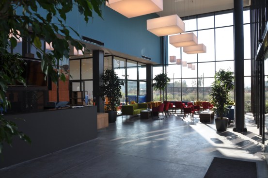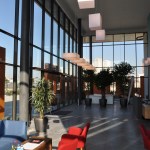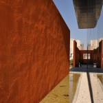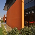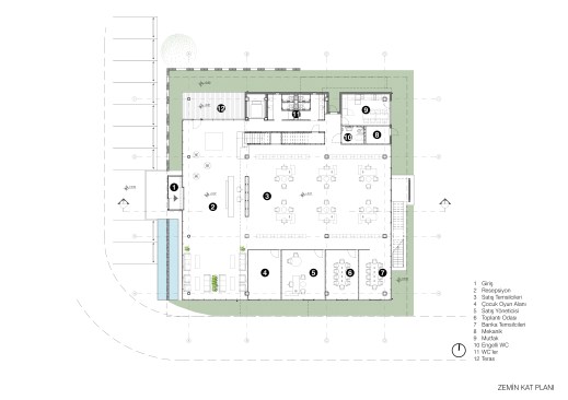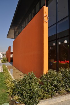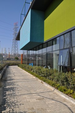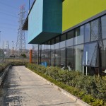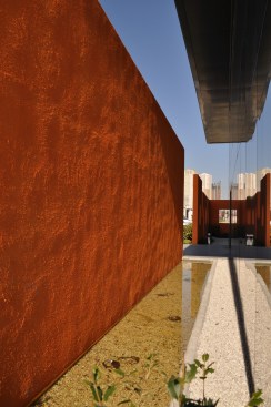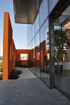 As an analogy between the main project, the entrance facade of the sales office welcomes visitors with a wall detached form the main glass facade.