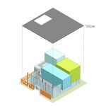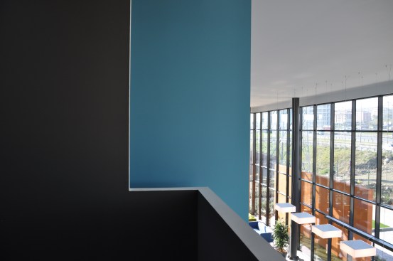 There is a possibility that this building might be temporary in its location or it may be preserved within an other programme as well. Knowing this the building was designed to have a steel structure, that led to the constructive advantage of having an entrance space eight meters high. The mock ups take place on the 1st floor of the building which also includes a terrace to observe the on going phases of the construction site.