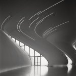 The library faces north, effectively controlling admitted light, while reading and archive floors are stacked and wrapped within the folds of the outer envelope. The floors fall to each other with ramps connecting them, allowing continuous circulation. Library and museum are further connected by a ramp that leads through the ground floor of the library to the first floor of the museum, while a bridge ‘flies’ across the library foyer connecting to the conference center.