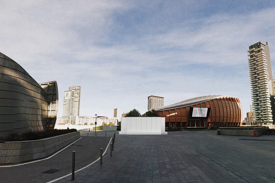The outside panels – made of the innovative Krion material – are designed as "empty canvases", which can be decorated by anyone wanting to express their creativity. Drawings, murals and thoughts will find expression for 24 hours, before being easily erased to leave room for new creations the next day.