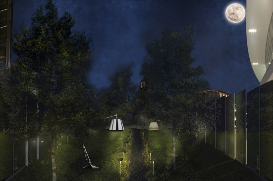 Hidden Garden aims to be an oasis where you can rediscover the pleasure of a walk in the park, a place where you can play, dream or simply spend time. An intriguing installation, which will change as the light changes from day to night.