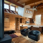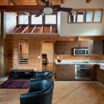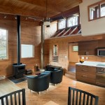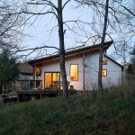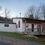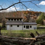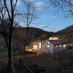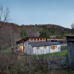 More than 30 years ago, a family purchased a tract of land along the Shenandoah mountain range in Pendleton County, West Virginia. At that time a small, one room A-frame hunting cabin sat in relative isolation at the base of the property along a winding dirt road that served as the only vehicular access to the site. Over the years the hunting cabin was expanded to include a living space covered by a low sloped shed roof and a sleeping room, roughly doubling the size of the house. Until recently the space accommodated scores of visitors and became embedded with personal memories and family history. Eventually, the structure deteriorated, water began to creep into the roofing, and the low slung lay-in ceiling of the living room began to show signs of mold. This sparked the undertaking of a significant, yet restrained renovation predicated on reinventing the place while maintaining traces of its past. While no additional square footage was added to the interior footprint, the roof over the living space and the hunting cabin was completely removed. The beautiful dimensional lumber of the original A-frame roof was left exposed within a new library space. This gave way to a more expressive roof structure which springs from four timber columns offset from the original footprint to allow the composition to become unified beneath. A linear set of clerestory windows tie the new form to the old and a new loft hovering over the kitchen signifies a new generation of inhabitants.