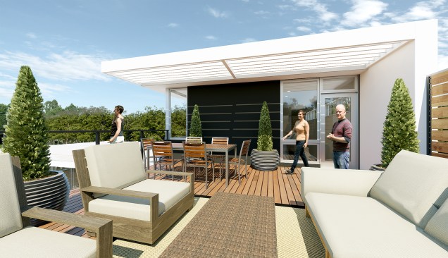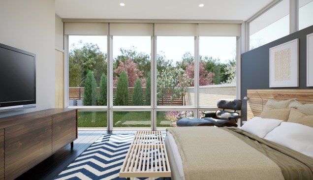 HP Modern is a new construction, 4 home single family courtyard enclave in an affluent suburb north of Chicago which is on the Metra commuter train to Chicago. Homes are designed to be accessible to accommodate any age and mobility without feeling institutional. Typical plans have master bedroom, laundry as well as living, dining, kitchen and office spaces on grade level with direct access to a private courtyard. Each house is approximately 4,000 sf of living space, 4 bedrooms and 3 1/2 baths. South facing floor to ceiling glass overlooking a private landscaped courtyard promotes efficient utilization of the entire property and encourages indoor-outdoor living with exterior spaces thought of additional living spaces as opposed to ornamental.