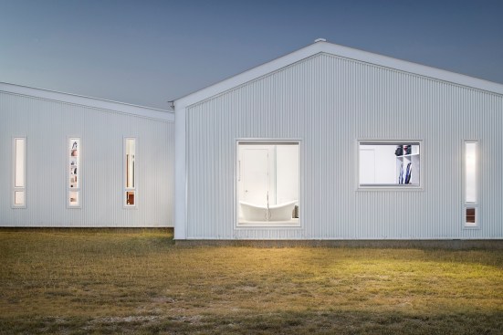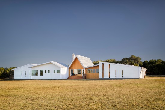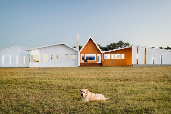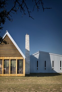 Conceived as a prototype for a sustainable rural community, the Hill Country House serves as a beacon to show what could be: a self-sustaining home in a rural setting, independent of municipal water and energy. Situated on a sweeping Texas Hill Country meadow, this private residence is defined by a series of jagged roof peaks inspired by the rise and fall of the surrounding hills. Lovingly referred to as “The Sanctuary” by its owners, an active retired couple, and executed on a modest budget, this modern take on the farmhouse vernacular is a place to bring people together and find spiritual renewal in a responsible, sustainable setting.