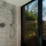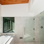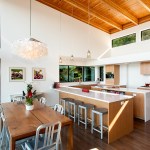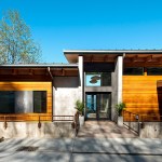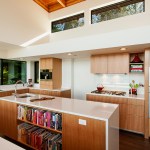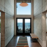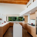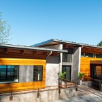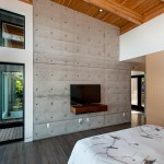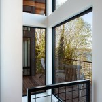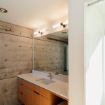 Upon entering the house, visitors travel across a bridge and through a concrete corridor that divides the public and private realms. The south side contains the living/dining/kitchen area on the main floor and downstairs holds a recreational space while the north side contains the master suite and additional bedrooms. One of the owners is a cabinet maker and she was able to showcase her talent within the beautifully day lit kitchen space. This home was custom tailored to the family and Coates Design hopes that they will continue to love and enjoy the space for many years to come.