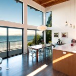 Built on a sloped lot with prior landslide issues, this home was an exciting challenge for Coates Design Architects. As the residence has direct beach access, this hillside home was designed with the sensitive shoreline environment in mind. The homeowners were a young family, searching for an open concept house plan that maximized their stunning 180 degree view of the Puget Sound. The team took on the task by incorporating 50 foot pilings to account for the sloped lot, and designing an open living space with double-high ceilings to achieve an unhindered view that places residents right on top of the water. Overcoming the challenges of the lot showcases Coates Design’s ability to design and implement custom house plans on complex sites.
