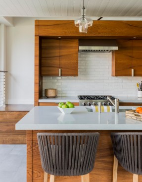 This project evolved in two parts, first we designed a new, LEED for Homes (GOLD certified) traditional style family home in a historic neighborhood. The result was a sunny, elegant yet informal, home based on traditional shingle-style forms with a casual, but classic, interior. The home was carefully sited on its sloping corner lot, using stepped terraces to anchor the house as well as creating separate areas for the pool, yard and garage entrance. A four-season porch extends into the yard and frames a stone patio for outdoor dining and entertaining.