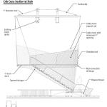 The task was a design and technological challenge. “We didn’t want to oppose the existing context, we wanted to engage it,” says Tom Beresford, project coordinator for Office dA. At the same time, the team desired a minimalist, nonintrusive solution. Atlanta-based structural engineers Uzun & Case Engineers were key partners in developing several iterations of the Crib, refining the suspension system and pinpointing the necessary connections. To build the Crib’s structural system, the designers attached 14 steel outriggers to the top of the crane. Pairs of slender, 5/8-inch steel rods hang from the outriggers, connecting to 28 steel T-beams that run beneath the Crib. The profiled T-beams support 1-inch corrugated steel decking and a 4-inch-thick concrete slab on top with embedded electrical and data conduit.