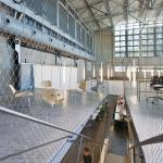His counterpart Nader Tehrani, principal in charge at Office dA (and now partner of a new Boston-based firm, NADAAA, formed this year with Katie Faulkner, AIA, and Dan Gallagher), saw in the commission an opportunity to reinvigorate Heffernan’s loft. Tehrani’s first step was to analyze the building to identify key attributes for development. By far, he says, “The high bay and how to reinhabit it were number one.” His central concept was to liberate the floor of the high bay to enable the room’s use as a setting for design studios, lectures, movie screenings, parties, graduations, and large-scale prototypes and installations. The key to that strategy? Hang the essential new program elements from above.