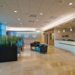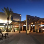 The renovation improved the patient-centered environment, and introduced sustainable elements to achieve LEED Gold certification. The client prioritized the remodel of the entrance and lobby to create a calming atmosphere for patients and family members. The lobby provides natural light with floor-to-ceiling windows, nature-inspired artwork, and comfortable seating areas. High quality limestone floor, wood paneling, and stone were chosen for the qualities of aesthetics, durability and ease of maintenance. The building’s dramatic new entrance creates a new identity for the Emergency Department, yet still blends with the existing hospital design. The canopied “gateway” and patio offer relaxation space for visitors and staff.