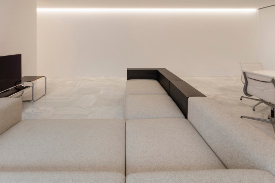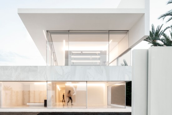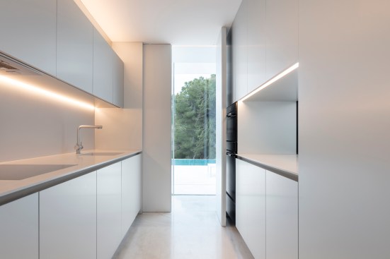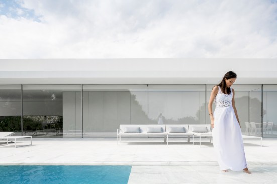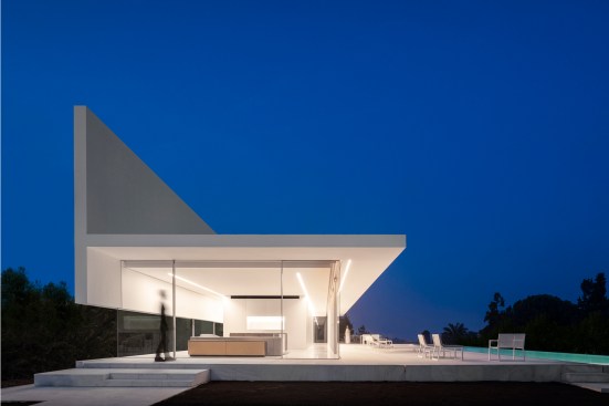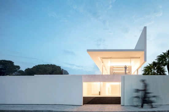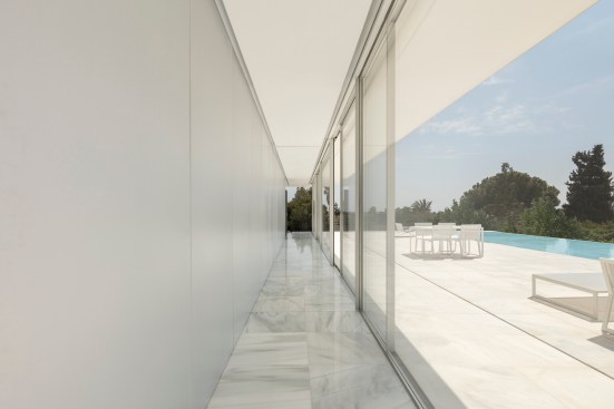 Three elements make up the project. An extruded cover in the longitudinal direction of the ground with a "T" shape is the framework in which space is inhabited. This geometry let us feel the sea, protecting from prying eyes, having the sense of living without neighbors. It helps control the southern sun during summer and lets it pass in winter. The walkable roof becomes a sort of belvedere enjoying the entire surface of the plot.
