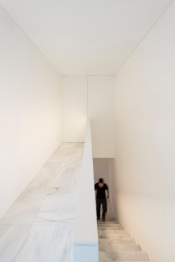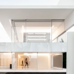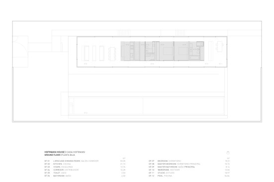A noticeably square plan, which covers an extensive range of uses in a compact area, is drawn. The staircase and the inner atrium distribute the spaces, prioritizing uses, with all spaces opened to the garden.