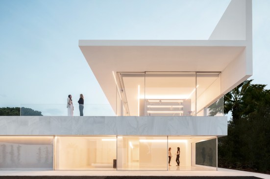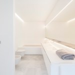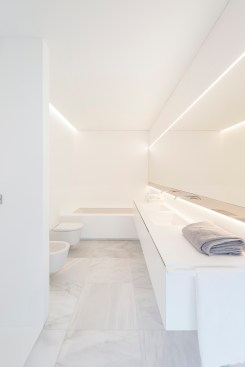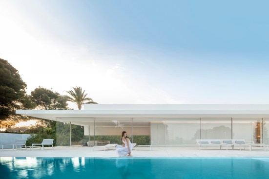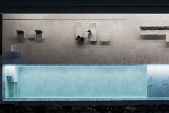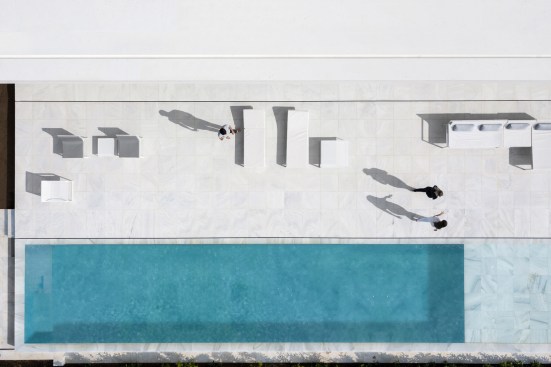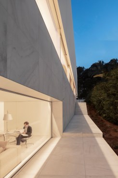 The scale of the house is moderated by understanding the living area as a base to emerge with the same natural stone which urbanizes part of the plot. On this base the sleeping area is deposited, creating shaded terraces where enjoying the outdoors.