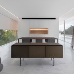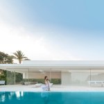An exempt cabinet houses the structure, distributes spaces and filters privacy, opening up possibilities in the way of movement and use of space. The main room, shaded by the cantilever is arranged in continuity with the outside. The interior of the unit includes wetted parts and limits the scale of overnight areas that are located in the quiet part of the garden. The study opens on the corner with the best views.