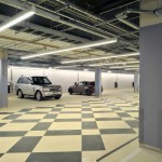 The calm, orthogonal geometries of the new residential buildings pose a deliberate contrast to the dramatic hyperbolic geometries of the exhibition hall’s roof. The facades of the new buildings register the amplitude of the roof’s curvature like ‘graph paper.’
