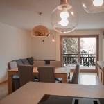 Valtournenche, at 1500 meters above sea level, is famous for its skiing facilities that connect to Cervinia. The typical local house is very low, extremely small in size, completely covered in wood and with warm and feeble lightings. Externally it is possible to find the typical combination of gray stone and wood, of which the local vernacular architecture “rascard” is an exemplary case. The project, instead of enclosing itself in a wooden cocoon, brings into the interior this strong relationship of splitted stone and honey wood. Light colors on the walls, new windows with reduced frames and the open-space kitchen, favor the entry of the snowy landscapes and their lights.