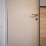 The grey color, applied to some walls and fabric elements, is the trait d’union of the composition, exalting the golden reflexes of the wood. Many copper elements, diffused in all the rooms, enrich and warm up the colors of the rooms.