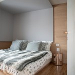 Due to the minimum space reserved for mountain interiors, every room was designed with millimeter precision, but without renouncing any kind of comfort or service. The bedroom has an indirect light hidden by the game of plasterboard panels, which composition focus the attention from the entrance to the opposite side of the room, like an alcove. Its design was inspired by some recent installation projects of contemporary museums (such as Serralves Museum).