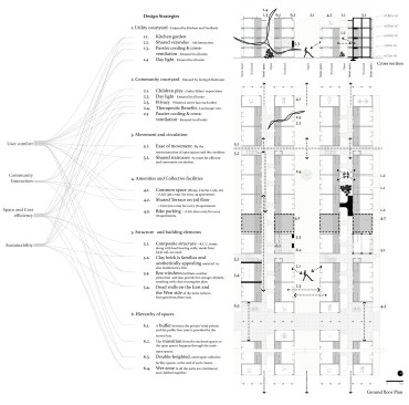 Each home is part of a cluster, which is formed by the alternating pattern of voids and solids, ensuring courtyards on both the sides of each apartment. The utility courtyard containing kitchen garden and the semi open verandas act as an extension to the entrance vestibule. On the other side, a band of green open space is the community courtyard, enjoyed by living areas of each apartment.