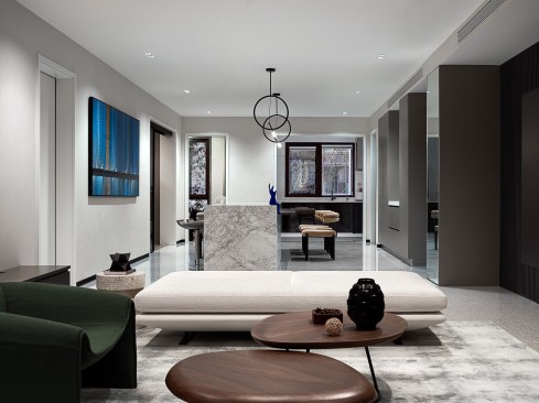 In this project, designer Wang Rui departs from the traditional entryway concept to make the most of an open counter layout.