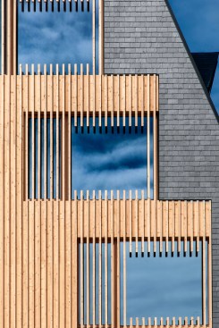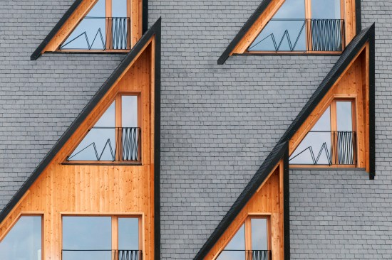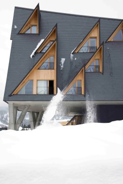 -The pointed windows mimic mountain peaks, pointed in a direction that best captures fresh snowfall.