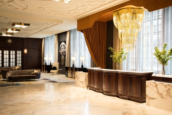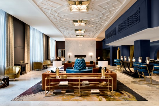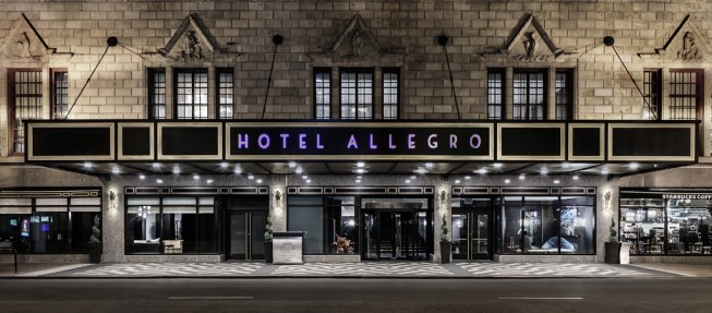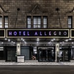 Originally constructed in 1926 as Hotel Bismarck, the Hotel Allegro underwent intensive renovations to restore its art deco glamour and modernize its communal spaces. The renovation targeted underutilized space and focused the redesign on ease of use. The front entry was reconfigured for better visibility and street presence. Once inside an outdated gift shop was removed to make way for semi-private meeting space and lounge areas. The restaurant that once occupied the first floor was converted and updated into state of the art conference space. For guests on their way to check-in, original restored brass handrails guide them up the main staircase to reception where they are ushered into the grand lobby with new floor to ceiling windows, bright white marble floors and marble paneled fireplace. The ceiling was updated to code and adorned with original lighting fixtures discovered in the hotel’s basement storage. The old reception area that was tucked behind columns and archways now hosts the lobby’s bar and additional waiting areas for guests. 483 guest rooms also received cosmetic updates to match the hotel’s new image.