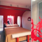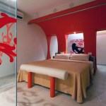 The main goal in the design of this hotel is stimulating emotions. Inspiration comes from the color selection, a daring mixture of red and turquoise that gives life to the smallest detail. Fun and original friezes, synthesized from the graphic art of each room, give an original highlight to the whole space.