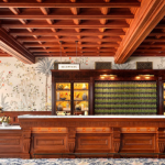 As guests continue through the arrival space, they will find a reimagined historic fireplace that has been elegantly used as a backdrop for the concierge desk. And new reception desks which were designed as a reproduction of the historic desks of years past. The desks feature a backdrop of historically inspired cabinets and a creative, curated art installation of vintage Hotel Del Coronado room keys with vibrant green tassels.