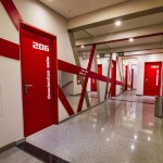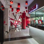 This space stands out in the urban landscape as a clear reference, an alternate route offering the guest a contemporary profile in accommodation services. The entry is through a primary way and immediately followed by a vivid and sensorial space. The suggestive color accents in the cylindrical lamps of the general areas invite you to go deep into a space full of nuances and textures.